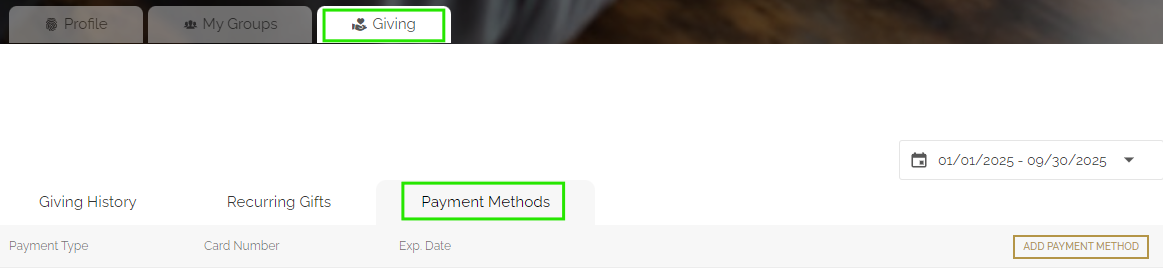 If you have set up recurring giving and need to update your payment information, you can easily manage your payment methods through your donor profile by following these steps: