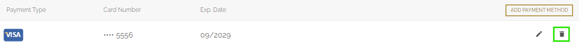 - After you have added your new payment method, select the trash can icon to the right of your old payment method.