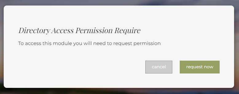 - You may notice a "Directory" option next to your name once logged in. However, access to your church's member directory requires approval from the Church's Admin team. To request directory access, simply click on "Directory," and a pop-up window will appear where you can submit your access request.