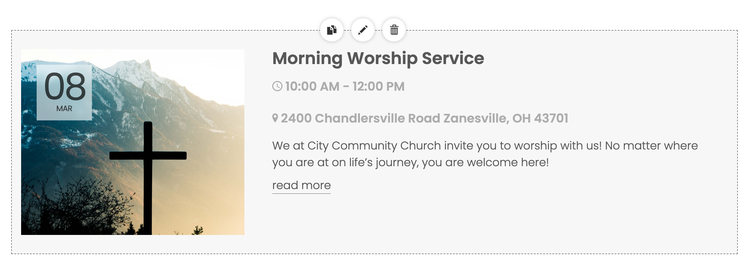 A big part of your church website is your events page! This is the place where everyone goes to see your church calendar of events… from weekly activities to monthly or quarterly events.